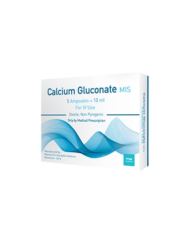 Calcium Gluconate MIS: Ampoule of 10 ml, 5 Ampoules/ Box. Splution for Intravenous infusion.