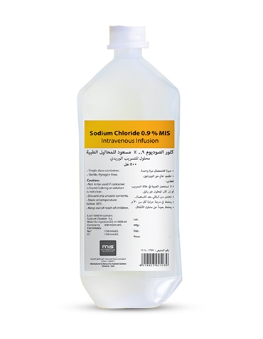 Sodium Chloride 0.9% MIS: P.E. bottle of 500 ml, Nipple Head. Solution for Intravenous infusion.